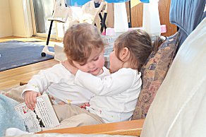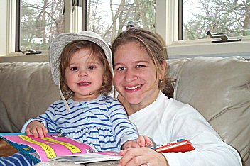 | Mom and Taylor enjoying the "hop on pop" concept. | ![]() |