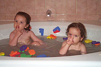 | One night we were being too noisy at bath time; the girls are telling everyone to Shhhhhh! |