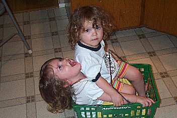 | They're too big to both fit into the basket at once. Taylor though this would work(left) until she got wedged (right). |