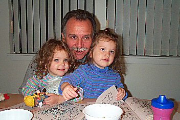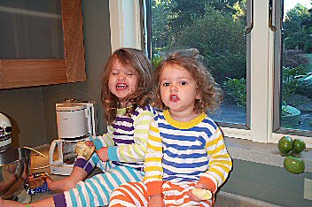 | most mornings, the girls come down stairs and sit on the counter while dad builds their first beverage of the day; this is usually a fun time for all of us! |
