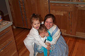 | the gang gets ready for halloween trick-or-treating in the neighborhood- mj is dressing in her dorothy costume from a few years ago. |