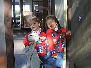 | Girls modeling their christmas outfits. |