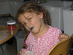 | One day dad took them to Bamboola, an indoor kids playground; they have all kinds of activities for kids; one of them is painting your own face- here's Taylors handiwork... |