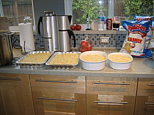 | For their main party, we invited their whole class from school, and everyone came. George prepped by building 15 lbs of macaroni and cheese... |