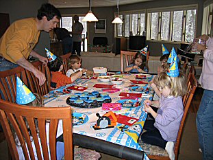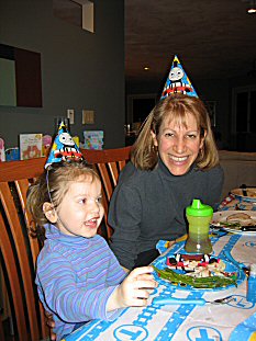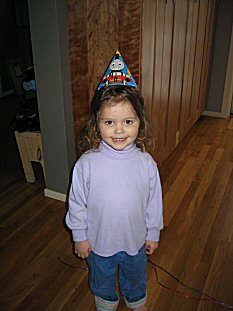 | Party hats are a pre-requisite- Jordan shows off her Thomas hat here... |