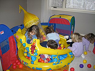 We also bring out the ball bin for all to enjoy. (ed- sadly, the ball bin didn't make it cross-country with us- we left it with our neighbor jennifer brock and hope her daugher enjoys it as much as we did) |