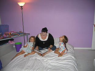 Kevin and Aubrie stopped by for a night on their way back east. HERE's Aubrie reading bedtime stores to the girls. |