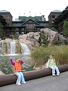 | We spent 3 days at Disney World. To avoid tons of travel, we decided to stay on property. Here's the front approach to the Wilderness Lodge. |