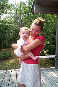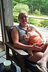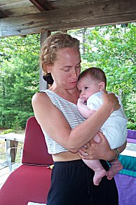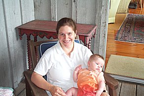 Louise from Minneapolis, one of Margaret's nieces, holding a sleepy Jordan. |