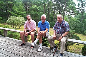 Several of the men in the outfit, hanging out on the back porch. From the left, we have Nathan (Louise's husband), Jerry (Deborah's husband) and Jerry (Barney's husband) |