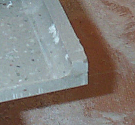 Now we get to seam the individual sheets together. All seams are routed and dry fitted to within a 64th of an inch. Then prepare a 4" strip to mount under the seam (to help support it). Use hot glue to apply the stop blocks we'll use for clamping the seam together. Apply the adhesive, clamp it and let it set up. SHOWN here, we're using 3 clamps to hold the corner seam together. Also, on the right, is the adhesive gun used to apply the glue. SHOWN here are |