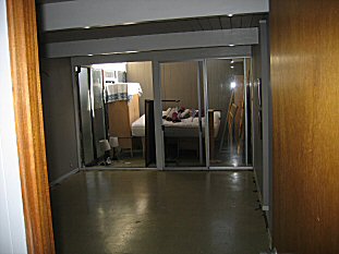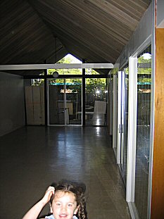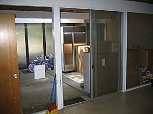 HERE's the gallery- stripped- the bookcases got packed up and all moved outside. [ed- its pretty terrific that here in CA it doesn't rain for months at a time, so we just threw everything outside...] |